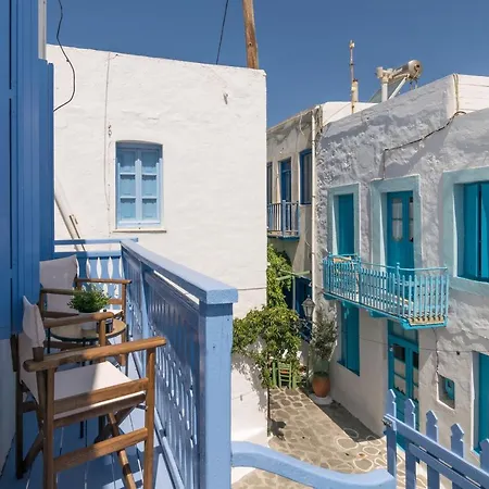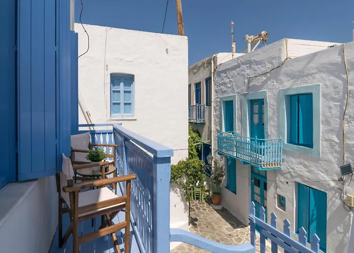 Blue Sky In Plaka Villa tilbyder en indkvartering inden for 20 minutter i bil fra Milos Island Nationale lufthavn. Der er en terrasse, en balkon og en sofa soveværelser med 1.